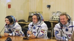 ئۆتۆمۆبێلی وڵایی ڕوسیا سۆێۆز بە ئەکتەر و بەریوەربەرەوە دەگاتە بنکەی ئاسمانی نێودەوڵەتی
